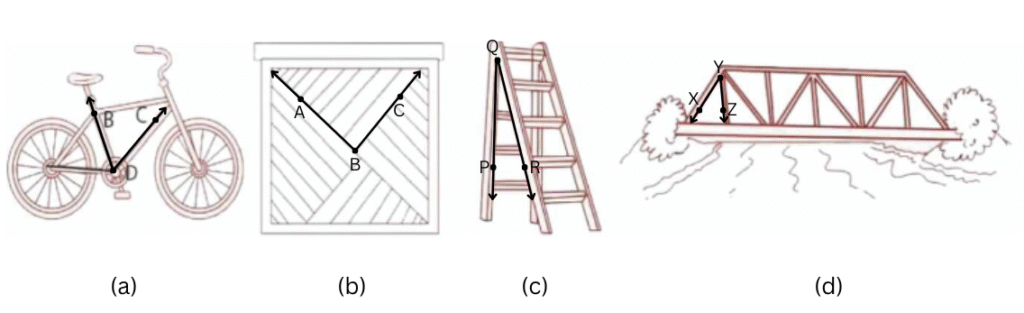 1. Can you find the angles in the given pictures? Draw the rays forming any one of the angles and name the vertex of the angle.