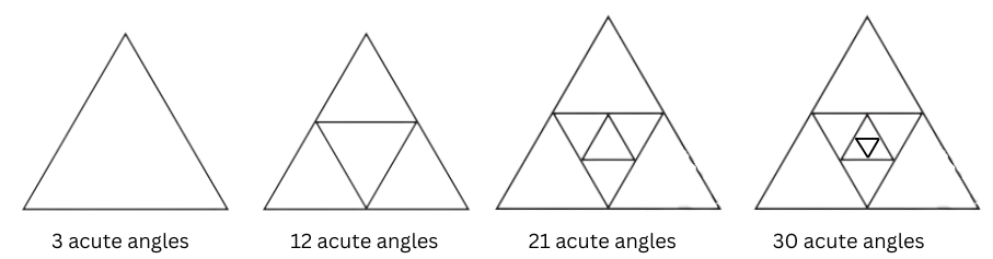 7. Puzzle: I am an acute angle. If you double my measure, you get an acute angle. If you triple my measure, you will get an acute angle again. If you quadruple (four times) my measure, you will get an acute angle yet again! But if you multiply my measure by 5, you will get an obtuse angle measure. What are the possibilities for my measure?