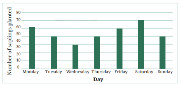 c. The greatest number of saplings were planted on Saturday, and the least number of saplings were planted on Wednesday.