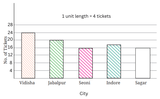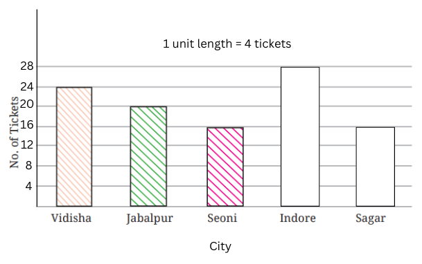 The bar graph to illustrate the above data taking the scale of 1 unit length = 5 students is shown below: