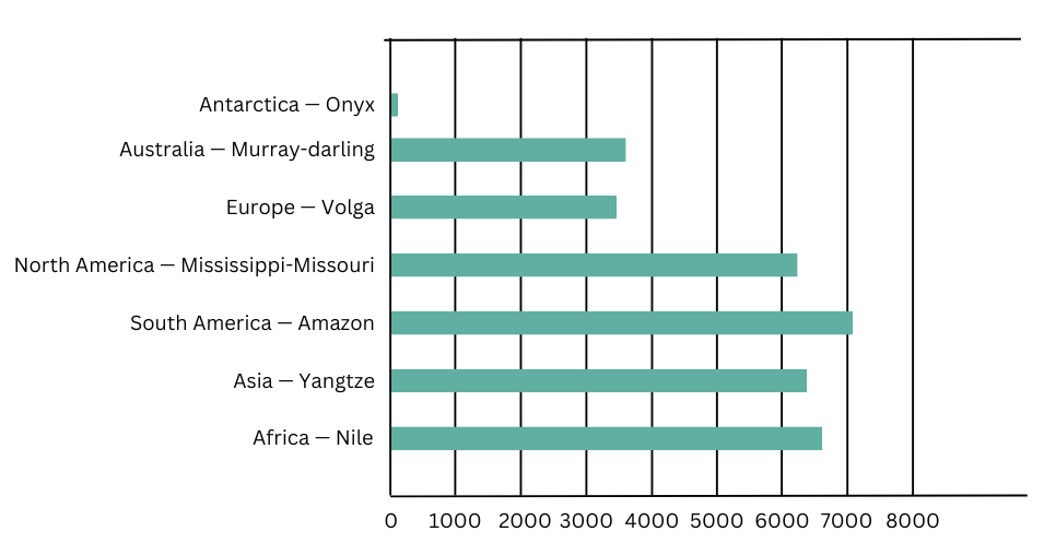 2. If you were making a table of the longest rivers on each continent and their lengths, would you prefer to use a bar graph with vertical bars or with horizontal bars? Why? Try finding out this information, and then make the corresponding table and bar graph! Which continents have the longest rivers?