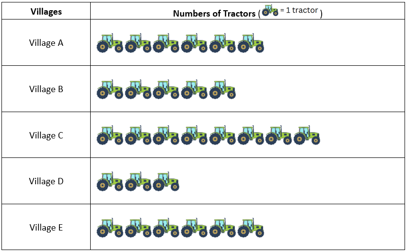 Therefore, Village C has (8 – 5) = 3 tractors more than Village B.