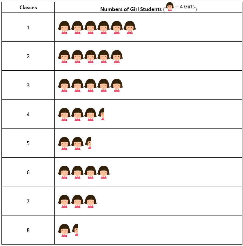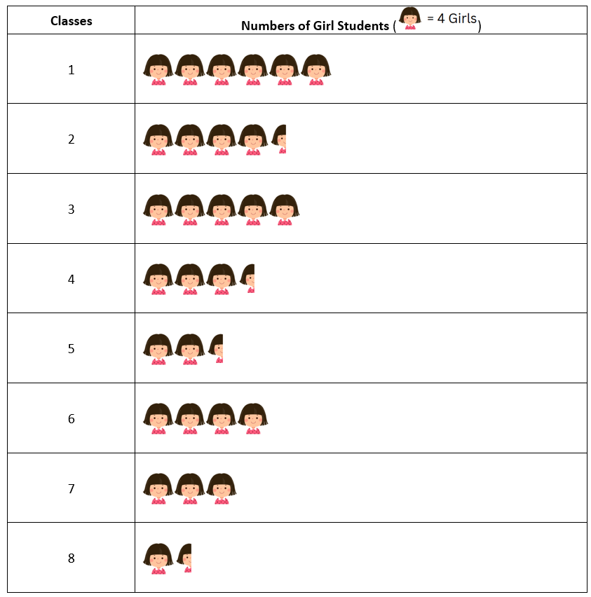 7. The number of girl students in each class of a school is depicted by a pictograph: