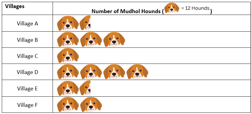 8. Mudhol Hounds (a type of breed of Indian dogs) are largely found in North Karnataka’s Bagalkote and Vijaypura districts. The government took an initiative to protect this breed by providing support to those who adopted these dogs. Due to this initiative, the number of these dogs increased. The number of Mudhol dogs in six villages of Karnataka are as follows—