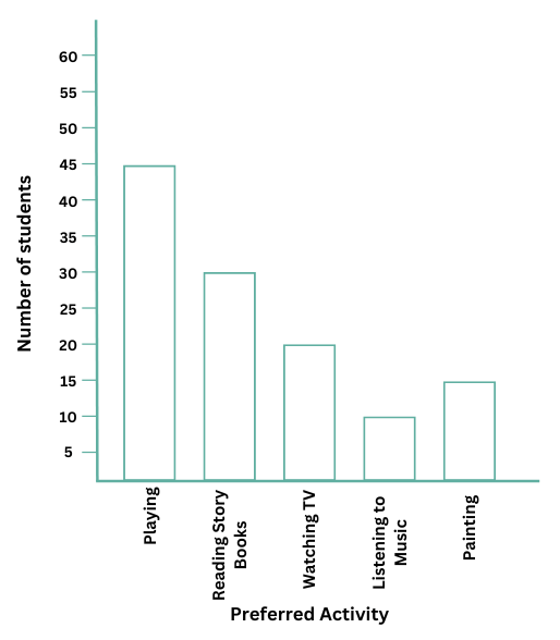 Draw a bar graph to illustrate the above data taking the scale of 1 unit length = 5 students. Which activity is preferred by most students other than playing?