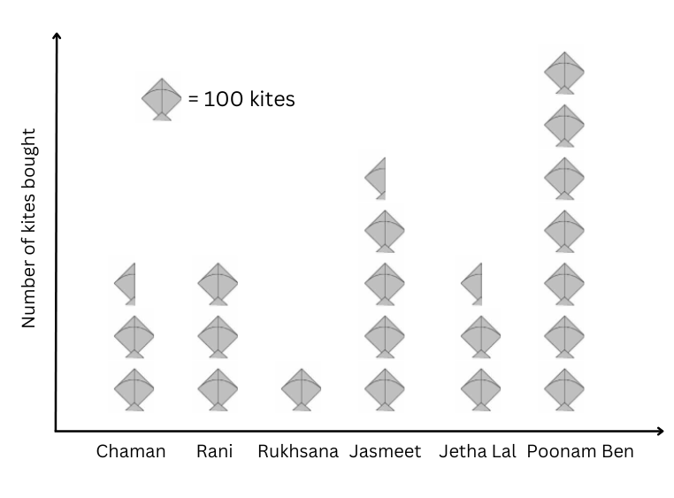 a. ‘1 symbol = 12 hounds’ is a useful scale or key to draw this pictograph.