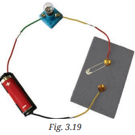 7. Vidyut has made the circuit as shown in Fig. 3.19. Even after closing the circuit, the lamp does not glow. What can be the possible reasons? List as many possible reasons as you can for this faulty operation. What will you do to find out why the lamp did not glow?