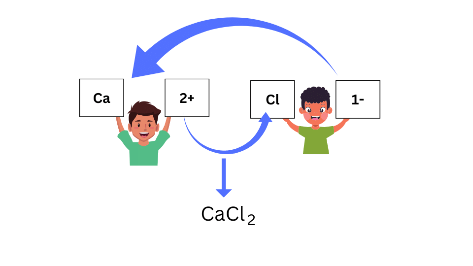 Example 1 : Make placards with symbols and valencies of the elements separately. Each student should hold two placards, one with the symbol in the right hand and the other with the valency in the left hand. Keeping the symbols in place, students should criss-cross their valencies to form the formula of a compound.
