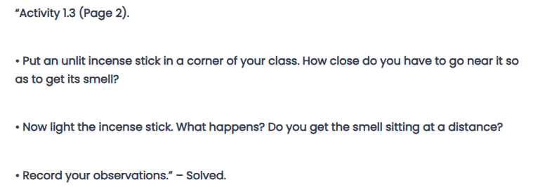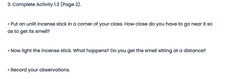 (i) Place an unlit incense stick in a corner of your class and observe how close you have to stand to get its smell.