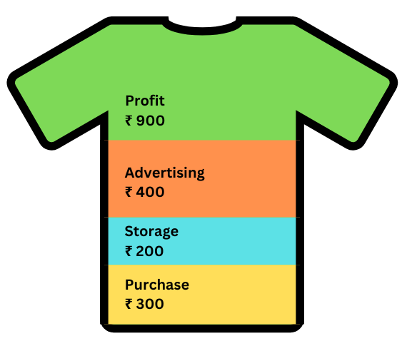 The cost price of the shirt includes the cost of the cloth and other materials, the worker’s wages, the cost of running the office, cost of storage and advertisement. (Rs 300+ Rs 200+ Rs 400 = Rs 900)