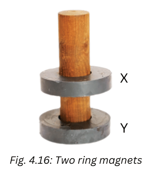 10. Two ring magnets X and Y are arranged as shown in Fig. 4.16. It is observed that the magnet X does not move down further. What could be the possible reason? Suggest a way to bring the magnet X in contact with magnet Y, without pushing either of the magnets.