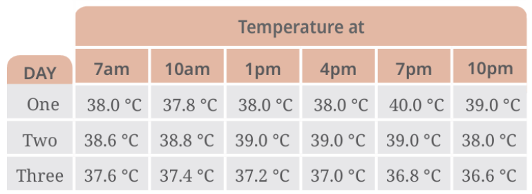 (iii) Vaishnavi’s temperature returned to normal Day Three.