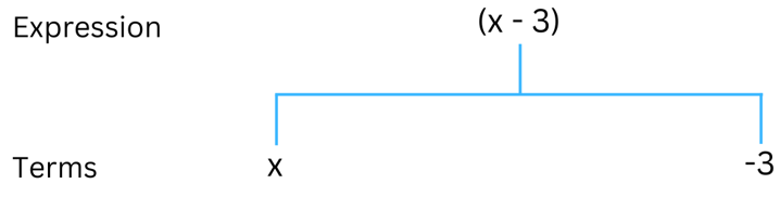 Answer: The expression (x – 3) consists of two terms x and (-3).