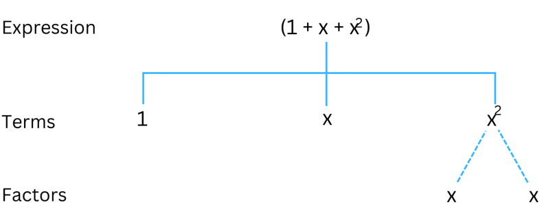 Answer: The expression (1 + x + x2) consists of three terms: 1, x, x2.
