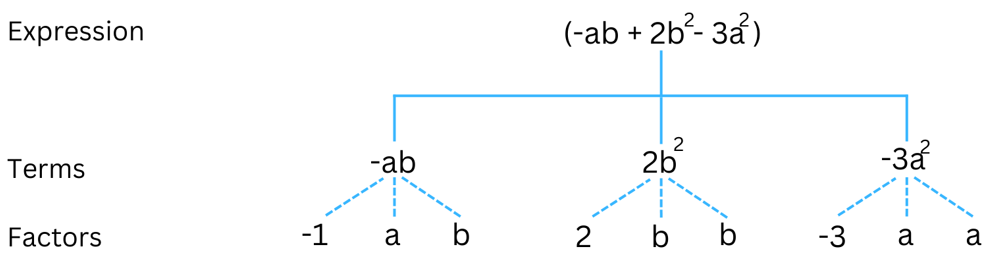 Answer: The expression (–ab + 2b2 – 3a2) consists of two terms: –ab, 2b2, –3a2.