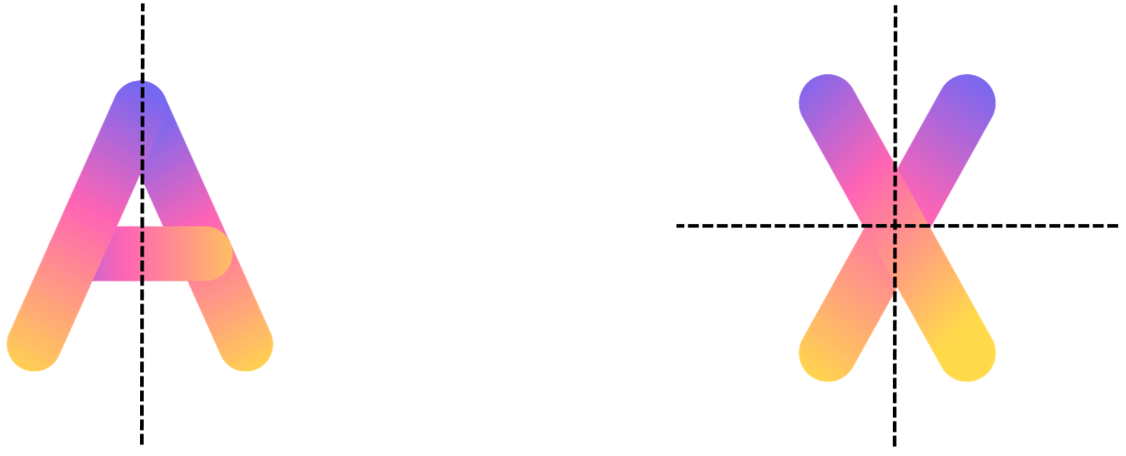 A has 1 line of symmetry and X has two lines of symmetry as shown below: