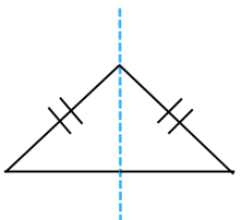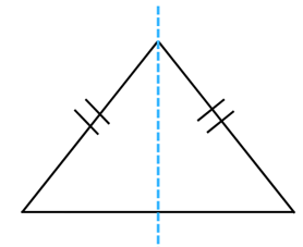Answer: The line of symmetry is the line(s) about which the figure may be folded so that the two parts coincide (after being folded). An isosceles triangle has 1 line of symmetry as shown below:
