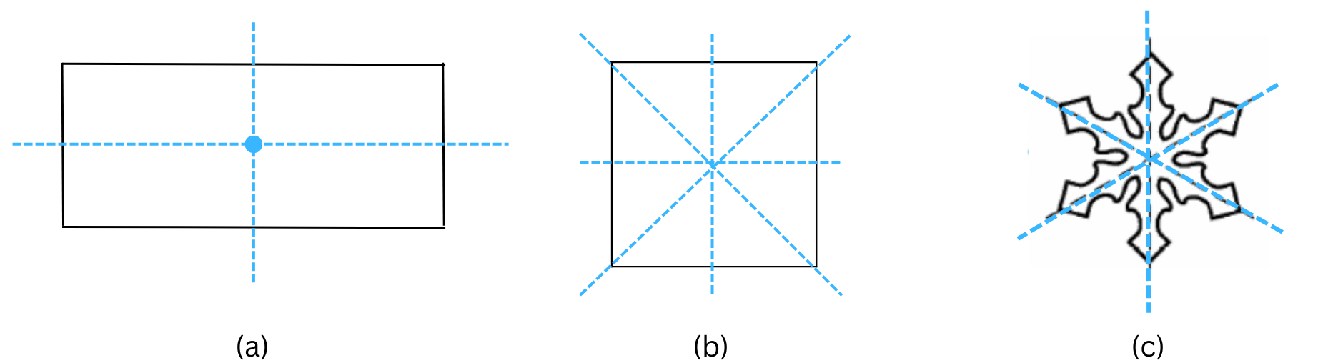 Figure (c) has 3 lines of symmetry, so we can say it has multiple lines of symmetry.