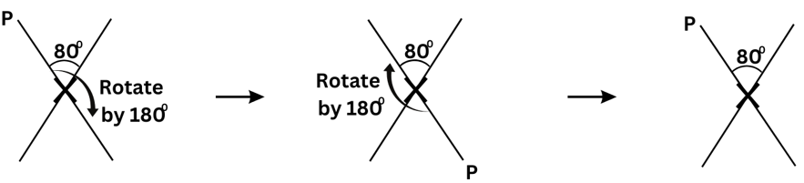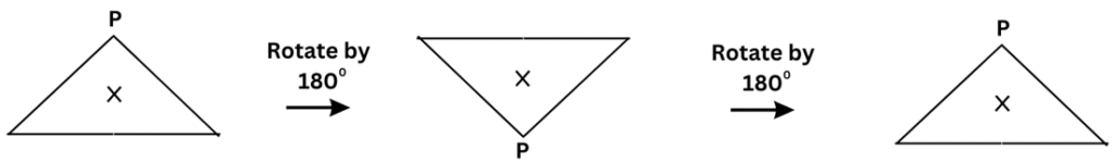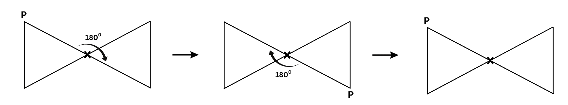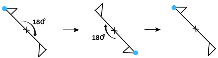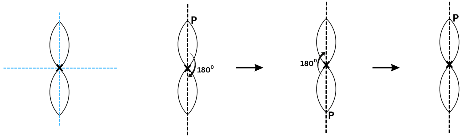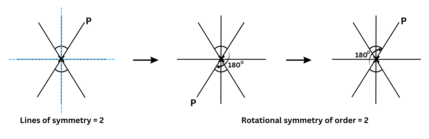 We rotate the figure about the centre of rotation (marked with an X). In a full 3600 turn, there are precisely two positions (on rotation through the angles 1800 and 3600) when the figure looks exactly the same. Because of this, we can say that it has a rotational symmetry of order 2.