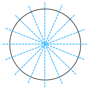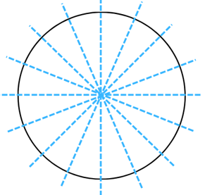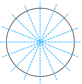 Answer: The line of symmetry is the line(s) about which the figure may be folded so that the two parts coincide (after being folded). It is easy to see that we can draw as many lines of symmetry as we want through the centre of a circle. Therefore, a circle can have an infinite number, i.e an innumerable number of lines of symmetry passing through the centre of the circle. Just a few of them are shown below: