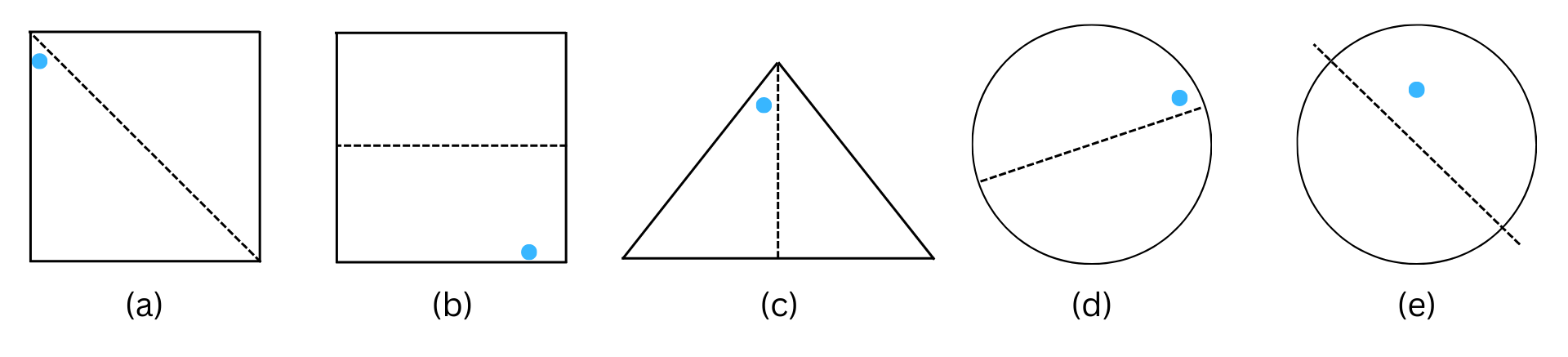 Figure (e) has 4 lines of symmetry, so we can say it has multiple lines of symmetry.