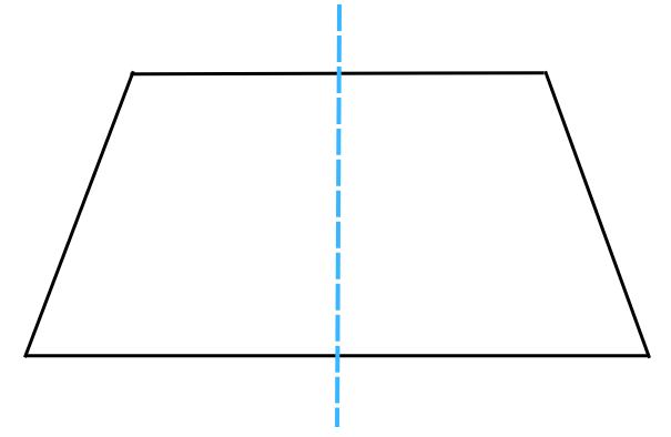 The line of symmetry is the line(s) about which the figure may be folded so that the two parts coincide (after being folded). Therefore, the above figure has 1 line of symmetry as shown below: