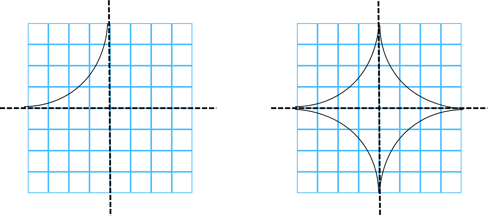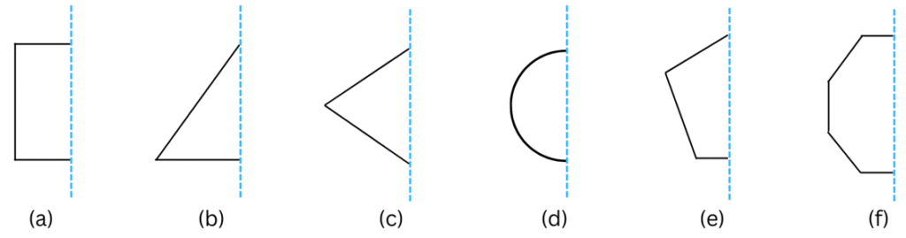 6. Copy the diagram and complete each shape to be symmetric about the mirror line(s):
