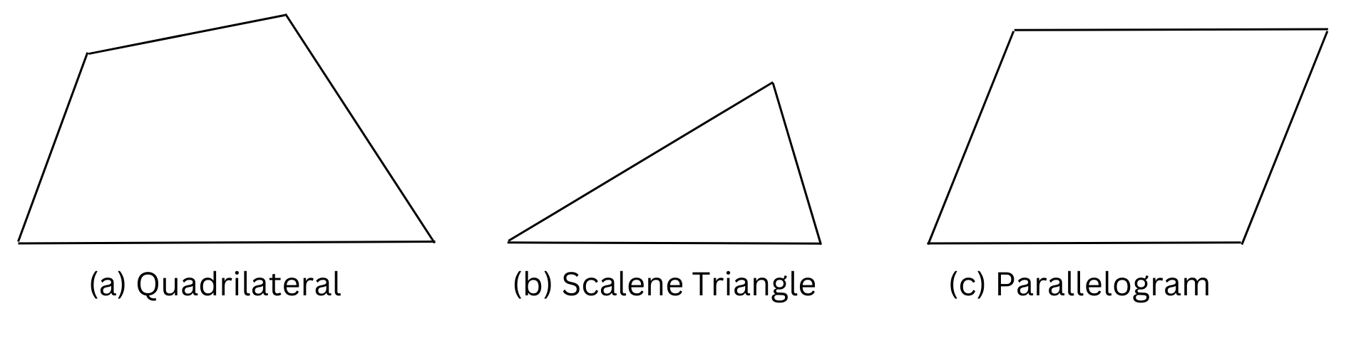 A scalene quadrilateral, a scalene triangle and a parallelogram have no line of symmetry.