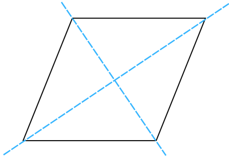 Answer: The line of symmetry is the line(s) about which the figure may be folded so that the two parts coincide (after being folded). A rhombus has 2 lines of symmetry as shown below: