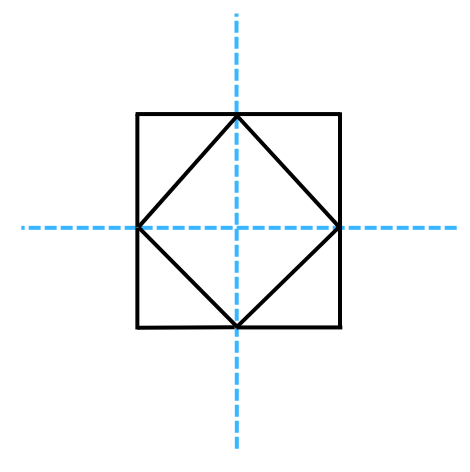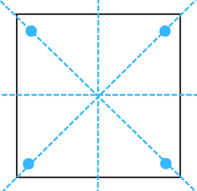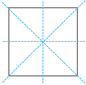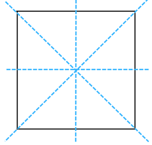 The square has 4 lines of symmetry (marked in blue dashed lines) as shown below: