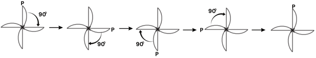 (a) We turn Figure (a) about the centre of rotation (marked with an X). In a full 3600 turn, there are precisely four positions (on rotation through the angles 900, 1800, 2700 and 3600) when the figure looks exactly the same. Because of this, we can say that it has a rotational symmetry of order 4.