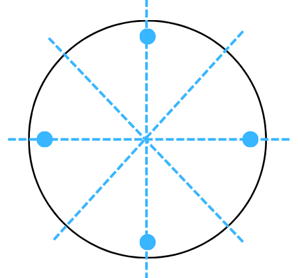 Square | Point of intersection of diagonals. | 4 | 900 |