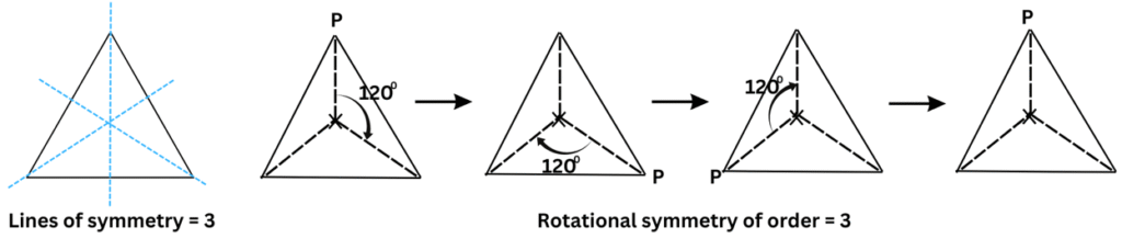 Equilateral Triangle | Point of intersection of medians or altitudes. | 3 | 1200 |