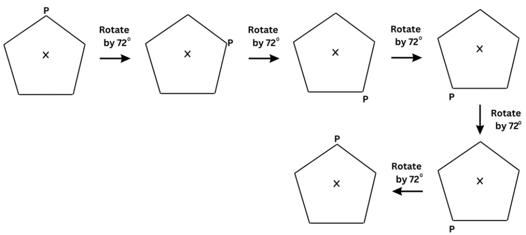 The trick here is to see if the angle of rotation exactly divides 3600. You will observe for a shape that if the angle of rotation exactly divides 3600, it can have a rotational symmetry of order more than 1, otherwise not.