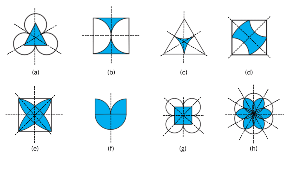 Figure (h) has 6 lines of symmetry, so we can say it has multiple lines of symmetry.