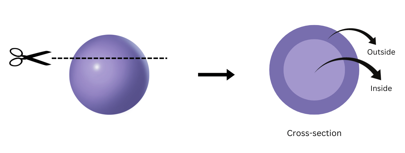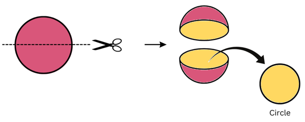 8. Visualize a sphere. If you cut it parallel to the base but not through the centre, what shape would the cross-section be?
