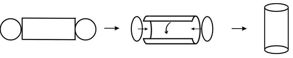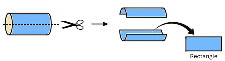 (ii) When a circular pipe is given a horizontal cut we get a rectangular cross-section as shown: