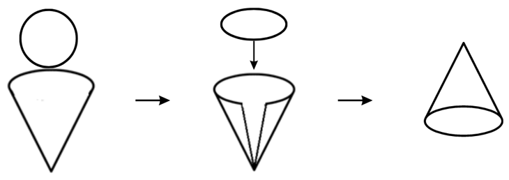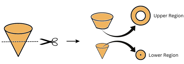 (ii) When an ice cream cone is given a horizontal cut we get two cross-sections, one for the upper half and one for the lower half: