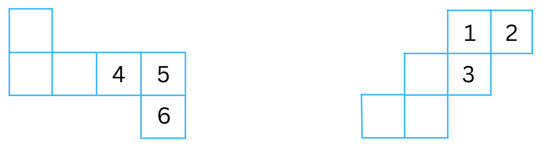 Insert suitable numbers in the blanks, remembering that the number on the opposite faces should total to 7.