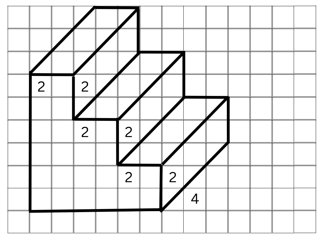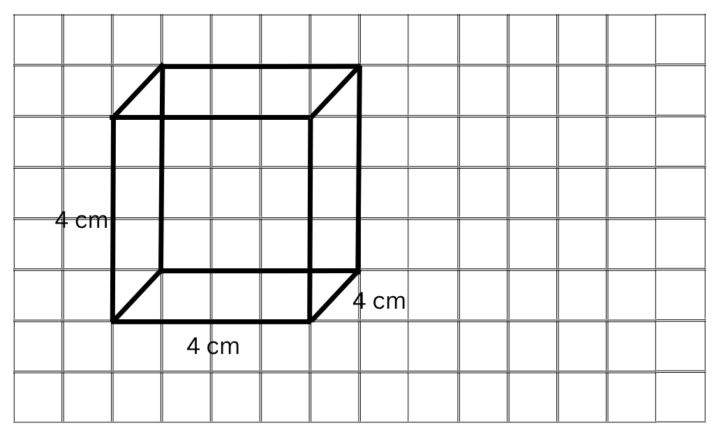 The isometric sketch of the cube with an edge 4 cm long is shown below: