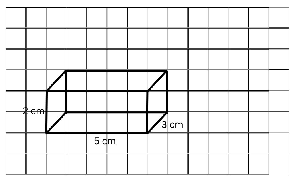 The isometric sketch of the cuboid of dimensions 5 cm, 3 cm and 2 cm is shown below: