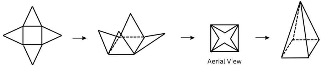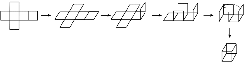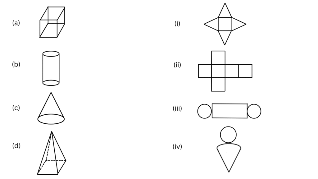 You will need to be able to visualise shapes and nets in different orientations. For this we recommend that you study our solutions and practise drawing the figures on your own in different orientations and then visualise them closely and try to draw them out on your own as well. This method will train your eye to be able to visualise and draw the right conclusions about any shape.