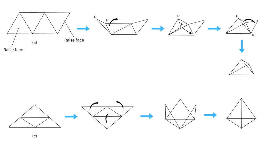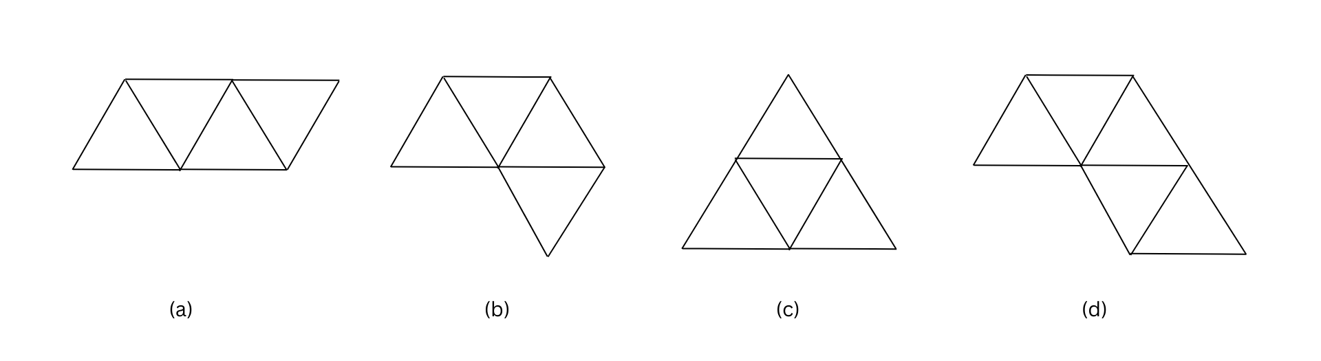 3. Here you find four nets. There are two correct nets among them to make a tetrahedron. See if you can work out which nets will make tetrahedron.
