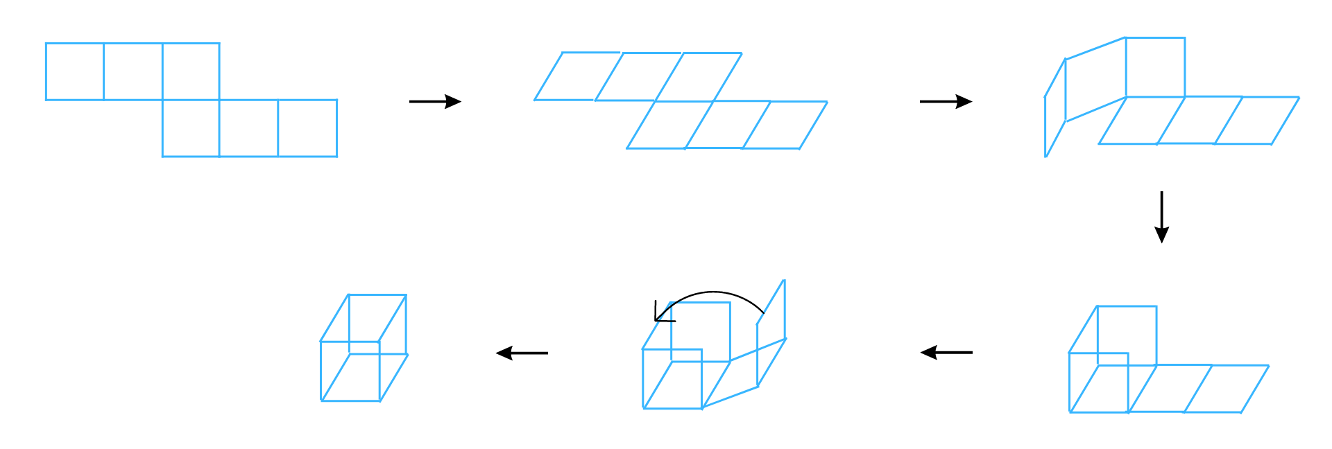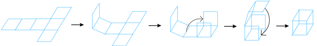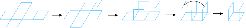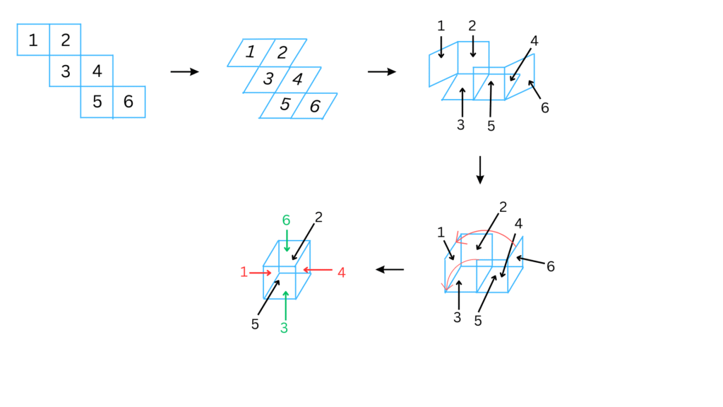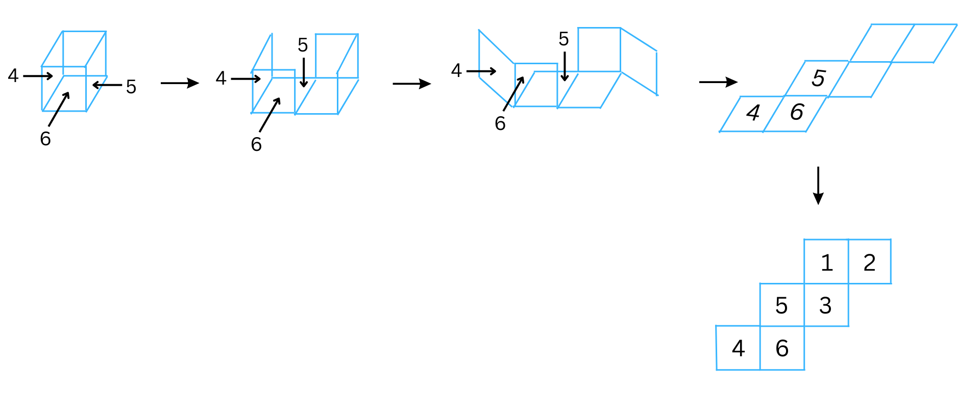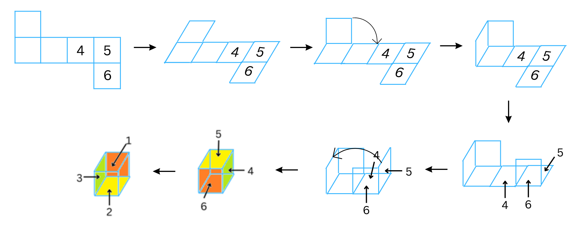 Now, to confirm where the numbers 4, 5, 6 should be on the net, we open the cube (die) again to reform the original net.