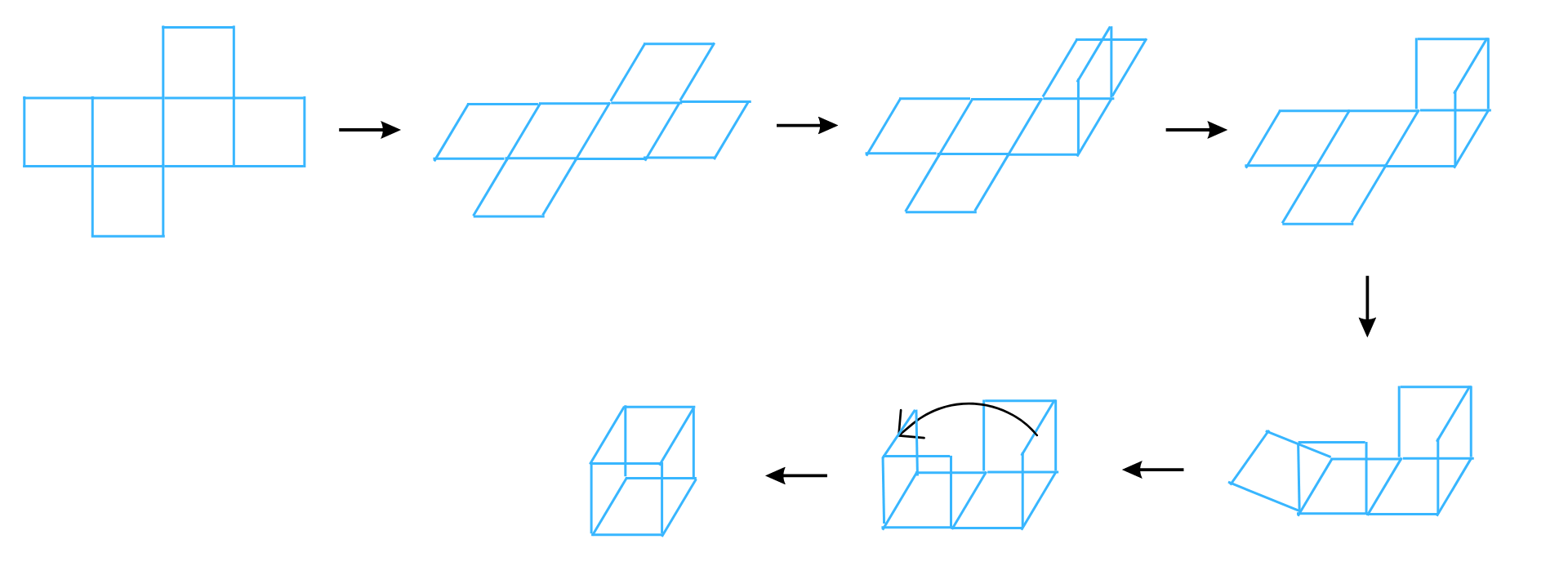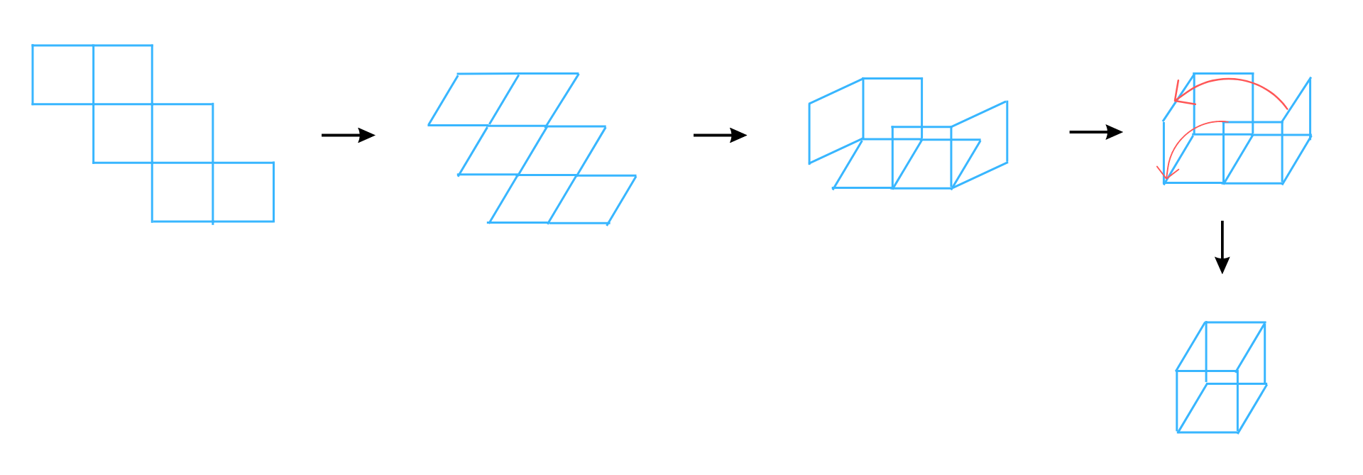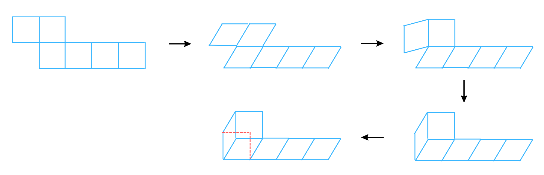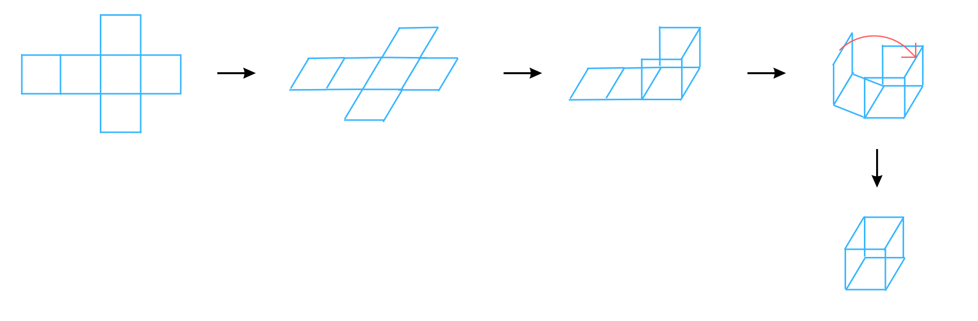 Now, to confirm where the numbers 4, 5, 6 should be on the net, we open the cube (die) again to reform the original net.