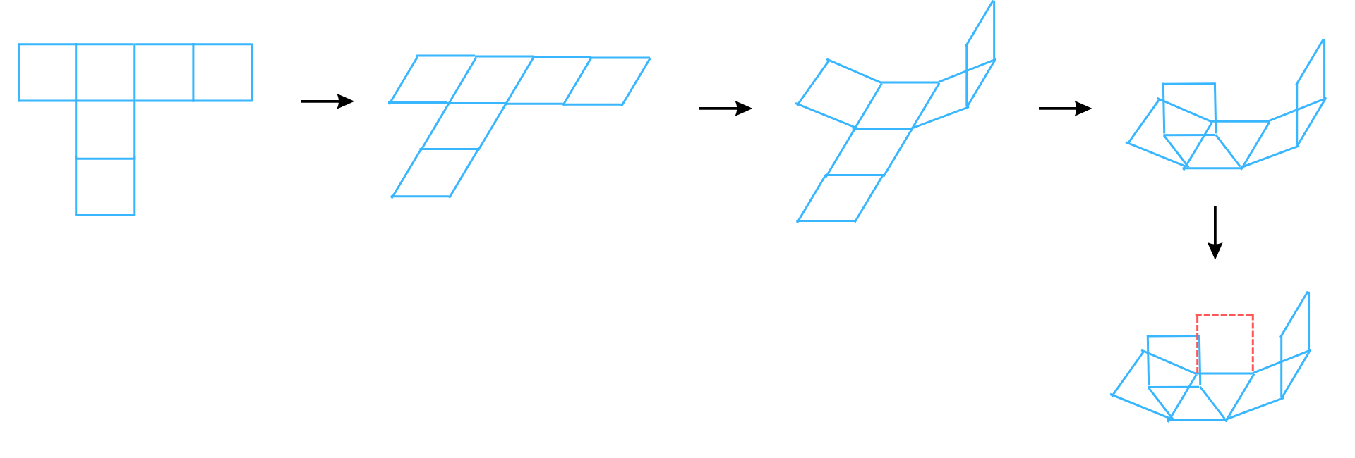 4. Here is an incomplete net for making a cube. Complete it in at least two different ways. Remember that a cube has six faces. How many are there in the net here?