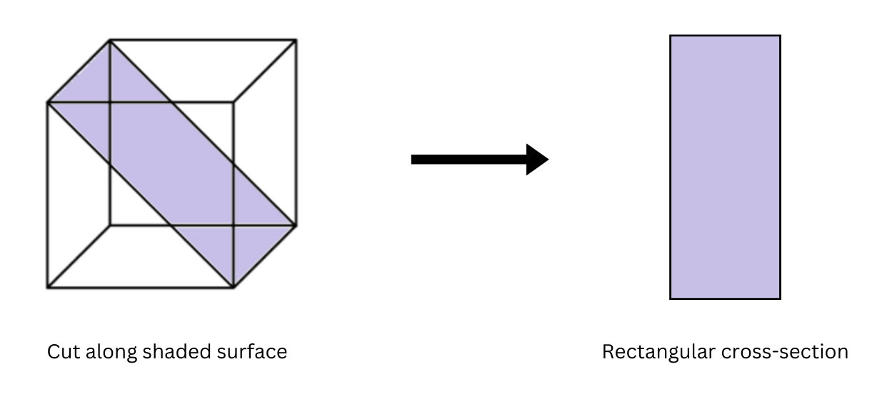 (b) Cut a cube in such a way that you get a rectangular cross-section.