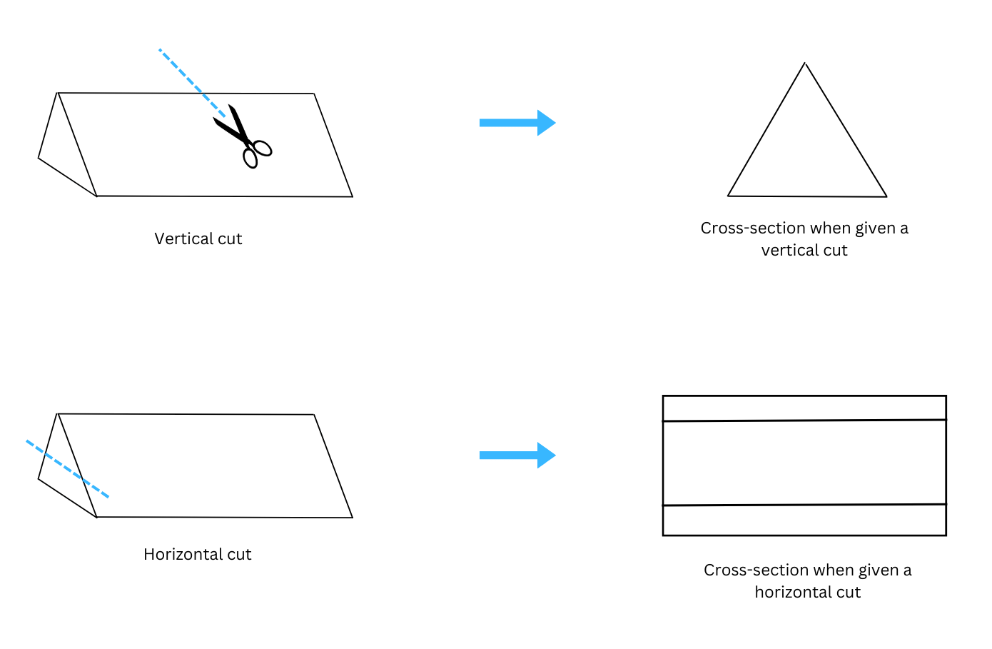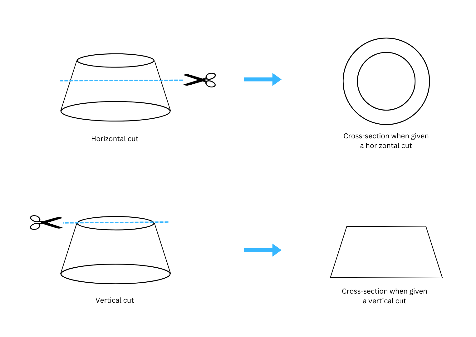 5. Find the horizontal cross-section and vertical cross-section of the shape below: