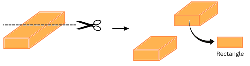 (i) When a brick is given a vertical cut we get a rectangular cross-section as shown: