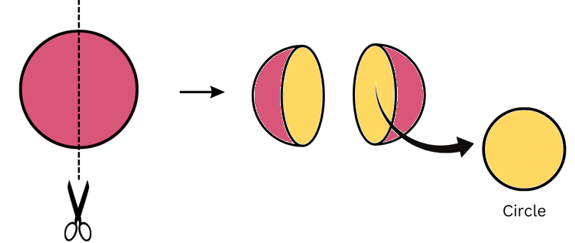 (d) A sphere is sliced through the middle to form two hemispheres.